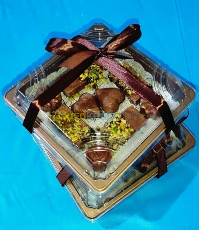 Des tranches de délices avec du chocolat, amandes, Halkoums et du noisette. Un bon et beau cadeaux pour vous et vos proches. 30 DA la pièce. 300 DA la boite. قطع البنّة.