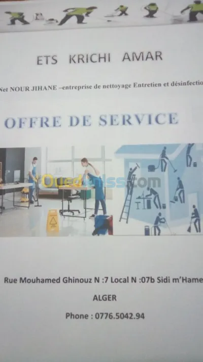 l'entreprise eurl hamdani net cherche une femme de ménage les environ de oued fayet ou bien cheraga salutations