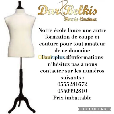 Dar Belkis une ecole de stylisme Modelisme de haute couture située à Sacré Coeur lance une deuxieme formation de coupe et couture avec un prix plus que raisonnable pour plus d'informat