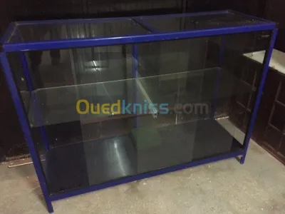 Présentoir dim : largeur 1.50 m , profondeur : 50 cm ,hauteur 1.10 m Le premier avec 1 etagère : 14000 DA Le deuxième sans etagère : 12000 DA