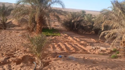 ارض سياحية بمساحة 6000 متر مربع وتقع في ولاية تيميمون وعل شكل بستان فيها نخيل وفيها بئر للماء ويطل على الو