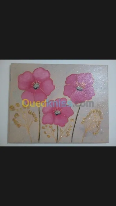 Je met en vente un tableau de peinture à l'huile fait a la main ,idéal pour accrocher au salon , une combinaison de texture mate et nacré ,effet marbre avec des perles ajoutées . Dim