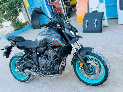 Description Yamaha mt07 2023 machi 14alf jdid -3clée kwaghet la maison dobal douusi -pot levansi - débridé - cache mouteur - gabdha ta3 lyade - moustacha - visyara
