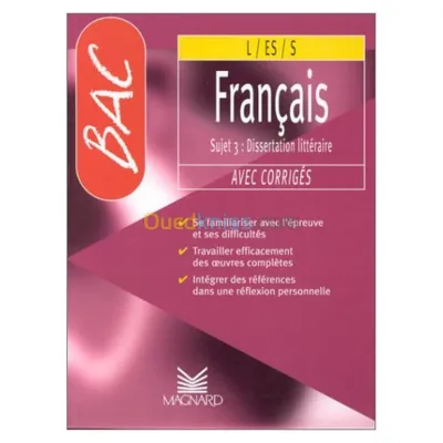 Titre : Bac français L-ES-S. Sujet 3 : dissertation littéraire avec corrigés Auteur : Grenot Editeur : Magnard Année : 1999 Théme : Scolaire Et Pédagogie Sous-théme : Français ISBN :