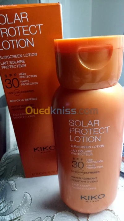 Vente creme solaire marque KIKOU 30 spf anti ox uv defence ,water resistant ,protection optimal, va a toute type de peau .