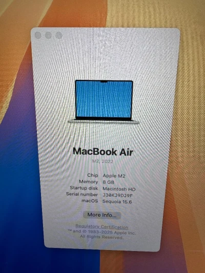 LAPTOP APPEL MACBOOK 2020 AIR RETINA M1 8GB RAM 256G SSD 13.3" 2K Etat:10/10 Prix** : 125000da Livraison à domicile disponible 58 wilaya Paiement à la Livraison