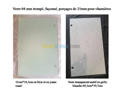 Fourniture et pose : 1) Rampes d'éscalier en INOX et verre trempé ( claire / sablé / fumé gris ) 2) Vitrines 3) Portes ,cabines de douche en verre trempé ( claire / sablé ) 4)