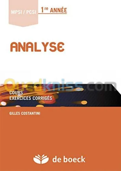 Titre : Analyse MPSI/PCSI 1re année Auteur : Costantini, Gilles Editeur : De Boeck Année : 2013 Théme : Sciences De L'Ingénieur Sous-théme : Mathématiques ISBN : 9782804166274