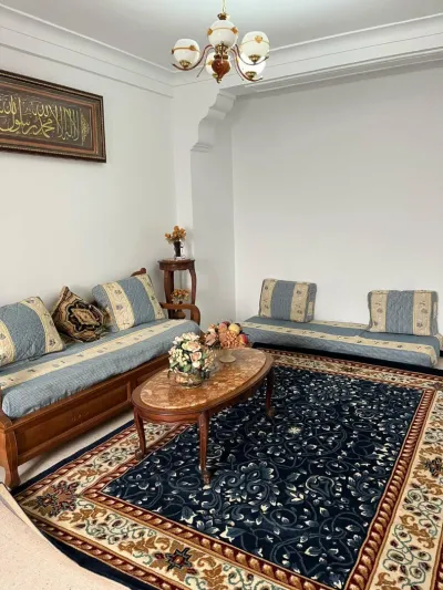 شقة f3 مجهزة و مفروشة بالكامل و معاذ طلائها . مطبخ مجهز بالكامل من ثلاجة و cuisiniere و chauffebain. غرفة نوم مجهزة . م�