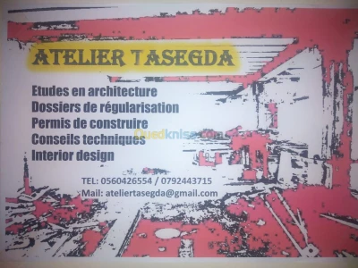 Atelier Tasegda , une équipe de jeunes architectes qui offre ces service pour différentes étude en architecture , élaboration de permis de construire , élaboration de dossier de régula