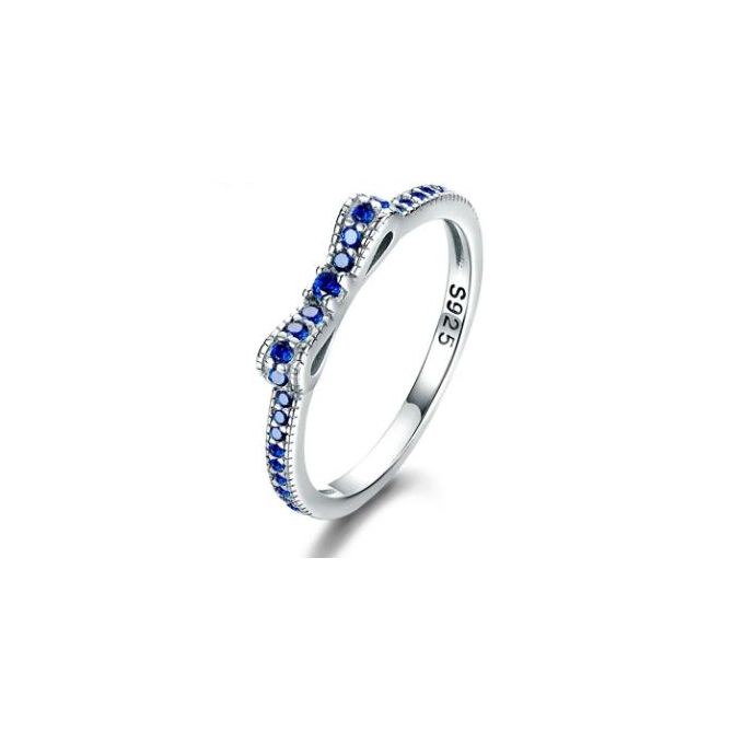 Bague en plaqué argent avec des pierres de zircon bleu et transparents sous forme de couronne. Cette bague est un indispensable d'élégance à avoir. Elle procure une grâce et une élé