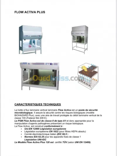 La société ATS met en vente des hottes à flux laminaire Bio Activa plus 120 d’origine Italienne.