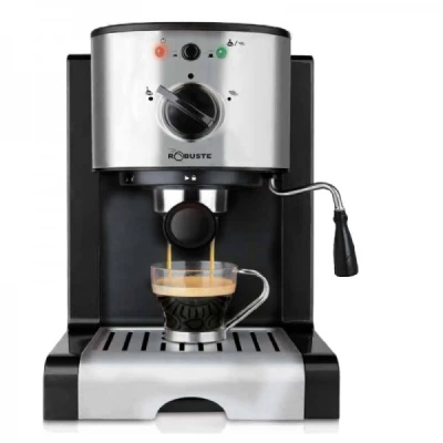 . pression puissante de 15 Bars avec bouton de commande de la vapeur . pompe ulka italie . grande réservoir d'eau amovible de 1,8L . filtre facile à utiliser pour le café moulu . buse d