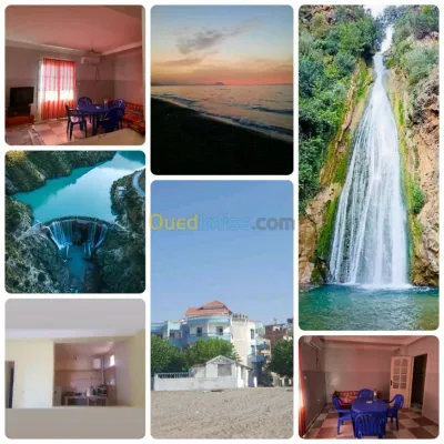 Location vacance 10 appartements F3 souk el tenine bejaia Plage a 20 mètres Eaux chaude 24/24 Cuisine equipe Frigo Télévision Climatiseur Plage familliale Terrasse pour bar