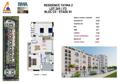 Promotion immobilière « Finie » * Agréable vue sur mer et montagne (YEMMA GOURAYA); * Endroit calme et paisible. Composée : 1. 07 logements ; 2. Un seul immeuble en R+04; 3