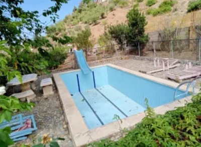 Villa avec piscine a louer a Aokas Bejaia il ya une salon et 3 grandes chambres avec des lits doubles et une piscine 7x3,5m Localisation dispo à partir du 28 aout location 3 nuits minimum