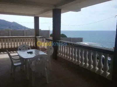 F2 + F3 avec terrasse beni Ksila F2 50 M2 avec terrasse F3 100 M2 avec terrasse F2 ===> 7500 F3===> 9000 DA/Jour location famillaile très propre a 40 m de la plage maiso