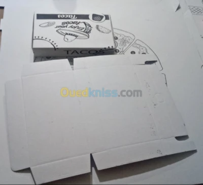 Impression et finition en emballage industriel (alimentaire et non alimentaire) barquettes de frites et emballage pour restaurants personnalisés. emballage en papier, en carton blanc gris /