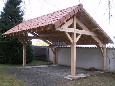 -Charpente en bois, pose de tuile ,décoration plafond en(pvc,bois) revêtement des murs en (pvc bois). Je suis un professionnel de la construction de la charpente en bois, je réalise