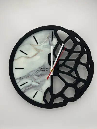 ✨ L'Artisanat au service de votre Décoration • Design Unique : Regardez ce contraste saisissant ! La moitié de l'horloge présente un magnifique motif effet marbre en résine , apporta