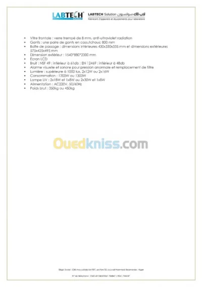 Bonjour, CARACTERISTIQUE conforme a la norme européenne EN 12 469. Le poste de sécurité cytotoxique LABTECH SOLUTION, constitue la solution de référence pour le traitement