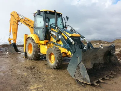 location d’un Rétro chargeur type HYUNDAI équipée d’un godet chargeuse ouvrante & godet Pelleteuse 60 cm. C'est un matériel fiable et tout neuf conçu pour l'exécution de tous tra