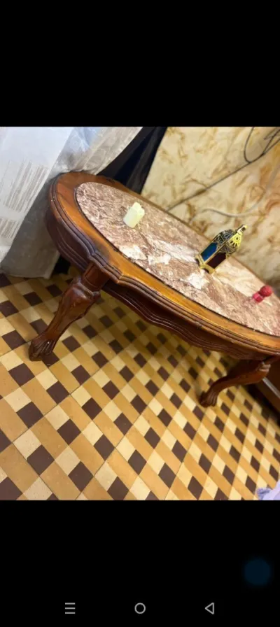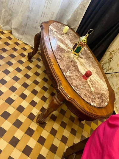 Salon complet à vendre 2 canapé 3 grand pouf Une table marbré Un coin avec son vase Le prix 55000 dinars