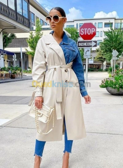 trensh : long Cote Jeans Cote Beige Avec Ceinture Long Taille : S M