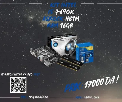 Kit pc cpu intel i5 4590 3.4ghz , carte mere Asrock H81 pro btc v2 , Ram 2x8 ghz 1600 mhz , fan cpu
