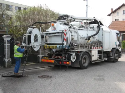 Nettoyage assainissement débouchage curage canalisation vidange fosse septique cave nettoyage société et la maison 24 sur 24h 7/7 blida Camion débouchage curage nettoyage vidange fosses