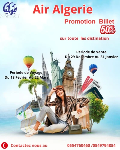 📣A l’occasion de mois de Ramadan 🌙 ✈️Air Algérie lance promo de 50% sur les billets aller retour en classe Économique 🔸Date d’achat de billet Du 29 décembre au 31 janvi