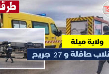 ميلة :27 جريحا في حادث انقلاب حافلة لنقل المسافرين 27 جريحا حصيلة حادث مرور خطير وقع صباح اليوم على مستوى