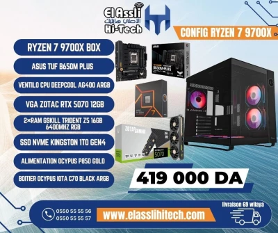 CPU : AMD Ryzen 7 7800X3D COOLING : DEEPCOOL LD360 ARGB MOTHERBOARD: ASUS TUF GAMING B650-PLUS RAM : 32GB (16X2) 6400MHZ DDR5 SSD : 1TB NVME SSD GPU : MSI RTX 5070 12GB GAMING TRIO PSU