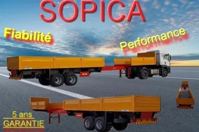 Semi-Remorque Plateau à 2-Essieux de SARL TOUFIK Poids Totale en Charge : 38T Charge Utile : 30T Ridelles : 800 mm Twist-Lock : 12 Pneus : 315/80 R22.5 Suspension : Mécanique Syst�