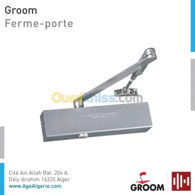 AGE Algérie représentant exclusif des ferme-portes de la marque Groom. GR105 Les + produits • Force 2/4 • Permet d’équiper des ventaux d’une largeur allant jusqu’a 1100 m