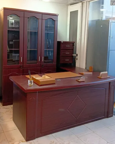 Ensemble de bureau prix choc _Bureau avec retour et 3 tiroirs centralisée dimension 200×90cm _3 armoire de deux porte _Table base _2 chauffeuses للطلب او أي إستفسار إت�