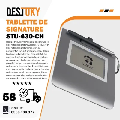 Idéal pour tout environnement de signature, le bloc-notes de signature Wacom STU-430 est un bloc-notes de signature monochrome polyvalent et complet avec un nouveau design fin et une surfac
