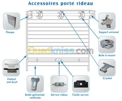 fabrication de rideau et accessoires métallique galvanisé selon les normes universel tel que : lame rideau pleine et perforé lame final boite a ressort tout diametre( 200/220/240) y