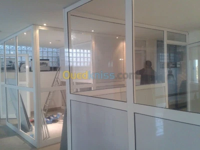 Nous sommes une entreprise spécialisée dans le domaine de la fabrication de toute ouvrages en aluminium; - cloison amovible de bureau. - fenêtres ouvrantes à la française et en osc