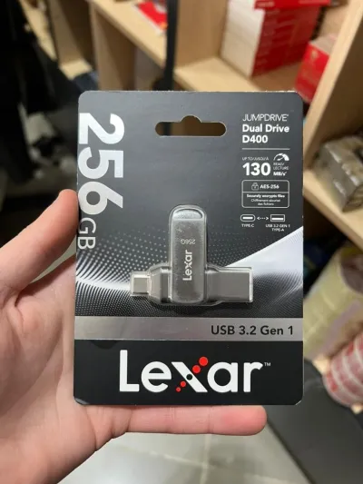 SPECIFICATIONS : ✅ Clé USB Lexar JumpDrive D400 2-en-1 (Type-C & Type-A) ✅ Capacité : 256 Go ✅ Interface : USB 3.2 Gen 1 – lecture jusqu’à 130 Mo/s ✅ Boîtier métallique piv