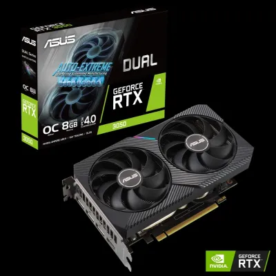 ASUS Dual GeForce RTX™ 3050 OC Edition 6GB GDDR6 PCIe 4.0, HDMI 2.1, DisplayPort 1.4a, 2-slot, Ventilateurs axiaux, 0dB)