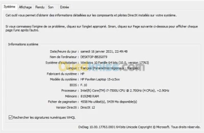 8g de ram 1 t de disk SSD i7 4 CPU 7 génération Carte graphique Geoforce 940mx