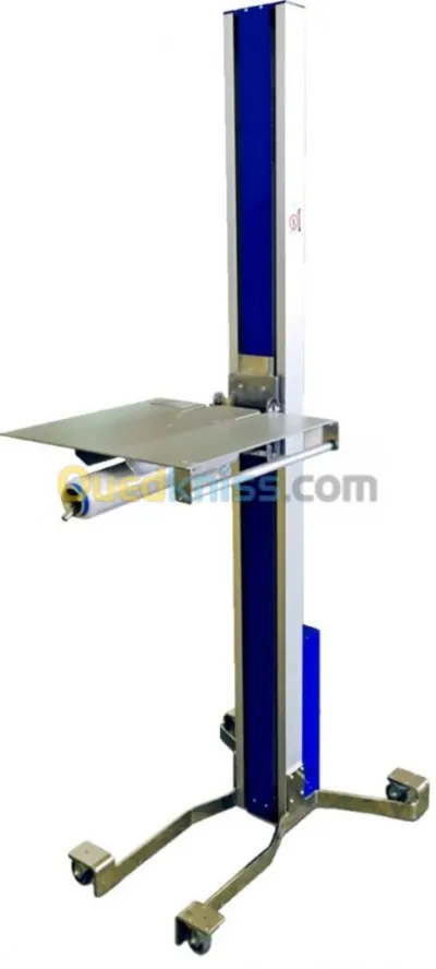Banderoleuse manuelle HERCULE Emballage sous film et levage des objets Dimensions de la machine LXlxH: 640x760x1950 Poids : 45 kg Batterie : 24 VCC Hauteur d'emballage : 2000 mm