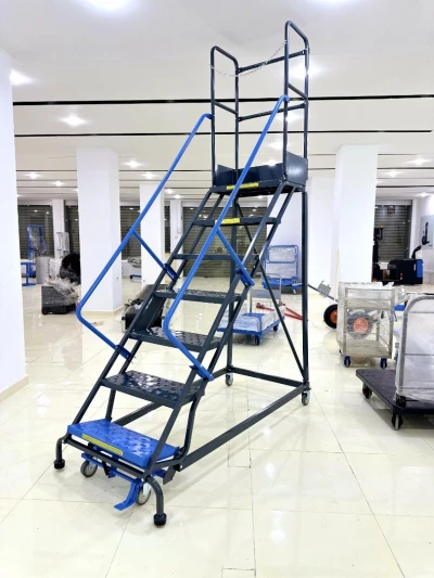 Escabeau à plateforme à immobilisation automatique avec portillon de sécurité 7 marches. Il o re une capacité de charge de 160kg pour réaliser des travaux d’entretien, d’électric