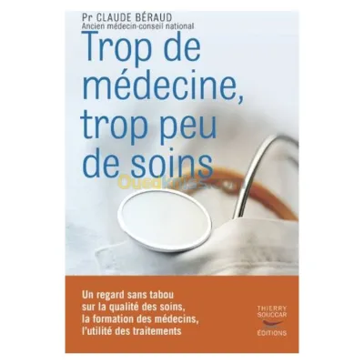 Titre : Trop de médecine, trop peu de soins Auteur : Claude Béraud Editeur : Thierry Souccar Année : 2013 Théme : Santé & Bien-Être Et Vie Pratique Sous-théme : Questions Du Quotidien