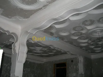 décoration en plâtre ;décor simple ,moulage gorge ,arcs,recases,tableaux...etc travail bien finis .