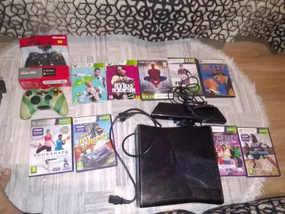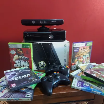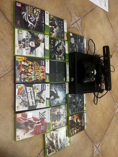 Xbox 360 avec 2 manettes , kinect , cable manette , 35 jeux mémoire et 20 cd et avec tous ses cables