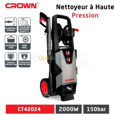 آلة التنظيف بالضغط العالي الأصلية من كراون بفعالية عالية CROWN Nettoyeurs Haute Pression 1800W CT42022 لطلب الخصائص Flux régla