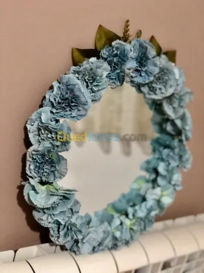 Miroir mural à fleurs handmade. Dimension: 34 cm. Couleurs: bleu / rouge. Livraison disponible selon le lieu.