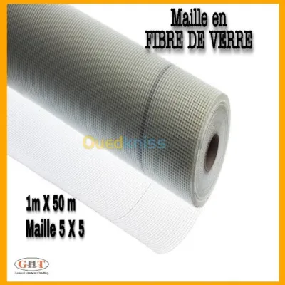 * Matière : Fibre de verre * Maille : 5 x 5 mm * Longueur : 50 m * Largeur : 1m * Conditionnement : par rouleau de 50m2 * Poids : 6 kg * 120g / M2 * Couleur : blanc .